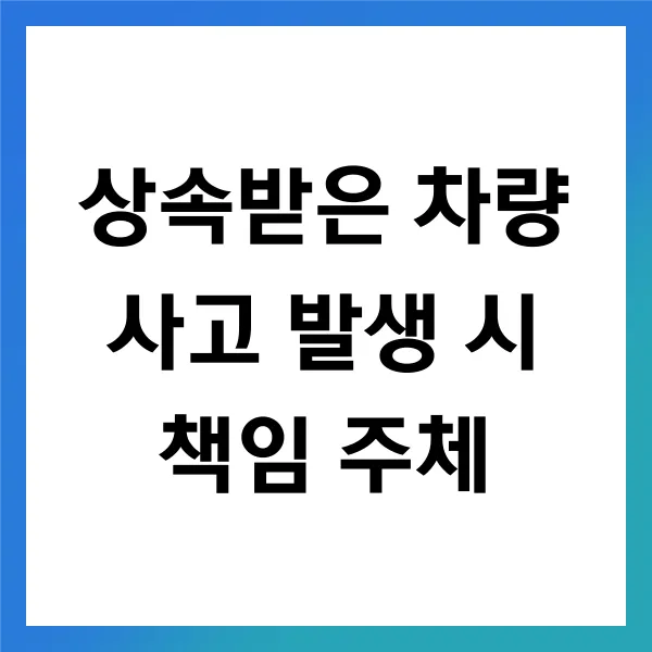 법적 책임을 규명하기 위해 , 상속받은 차량의 소유권이 명확히 정리되어 있어야 합니다. 차량 등록증, 유산 상속 증빙 서류 등을 통해 소유권을 입증해야 합니다. 만약 상속 절차가 아직 완료되지 않았을 경우, 법적 보호를 받기 위해 상속 절차를 신속히 진행해야 합니다. 상속인간의 분쟁이 있을 경우, 법원에 중재를 요청할 수 있으며, 이는 한국 민법 제1000조에 의거하여 처리됩니다.