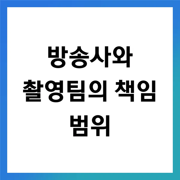 사고 현장에서 촬영 중이던 방송사 및 촬영팀은 사고에 대한 사실을 정확히 기록하고, 이를 법적으로 활용할 수 있도록 모든 수집된 자료를 보관해야 합니다. 이는 향후 법적 분쟁에서 중요한 증거로 활용될 수 있으며, 사고의 책임을 명확히 하는 데 결정적인 요소가 될 수 있습니다.