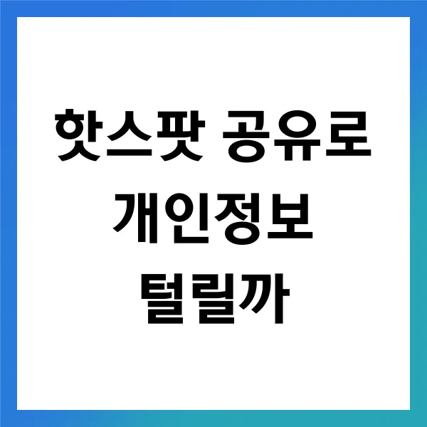 핫스팟을 이용하면서 느낀 점은 , 편리함 뒤에 숨겨진 위험이 적지 않다는 것입니다 . 최근에 한 번 핫스팟을 통해 인터넷을 사용해야 했던 일이 있었습니다. 그때 제가 개인정보를 얼마나 쉽게 노출할 수 있는지를 깨닫게 되었죠 . 공유하는 순간, 내 정보가 누군가에게 전해질 수 있다는 생각은 정말 무서웠습니다 .